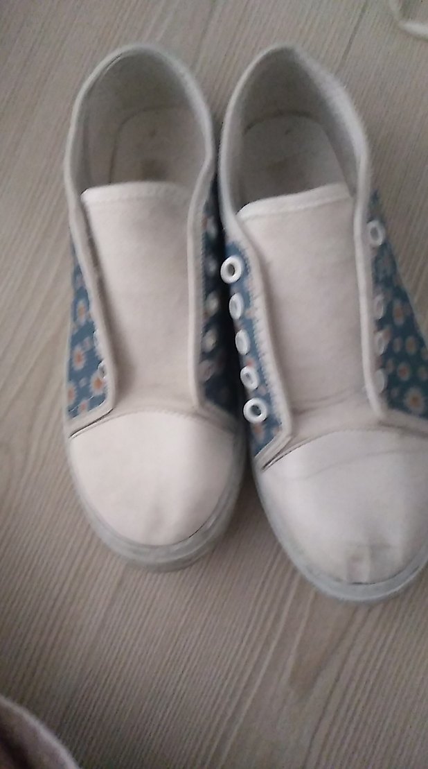 bağcıklı mavi kız spor ayakkabısı, gri bağlama desenli minimal tasarım, günlük ve sokak stili için uygundur. fotoğrafta çok küçük bi hasar var kullanmaya sorun değil