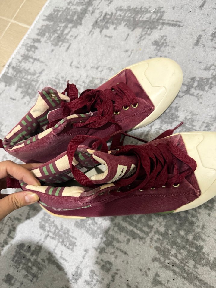 Bordo süet malzemeden, bağcıklı ve renkli tie-dye desenli iç astarlı kadın spor ayakkabı. Günlük kullanıma uygun rahat model. 43 numara