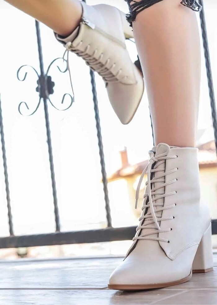 Bağcıklı bot bej deri
