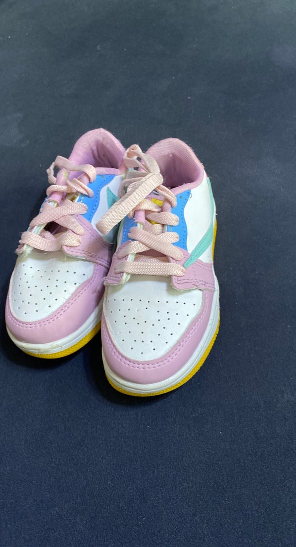 Bağcıklı, lastik tabanlı, çok renkli ve pastel tonlarda bağcıklı kız çocuk spor ayakkabısı, bağlama desenli, sokak tarzı için uygun.