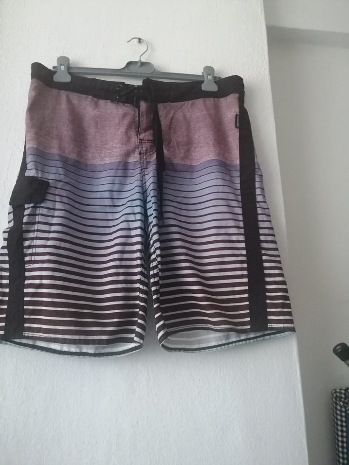 Bağcıklı, bol kesim, koyu renkli tie-dye desenli erkek plaj şortu, sokak tarzına uygun. Cepli, L beden. Ölçüleri bel 47x2 cm boyu 55cm. Kinetix marka