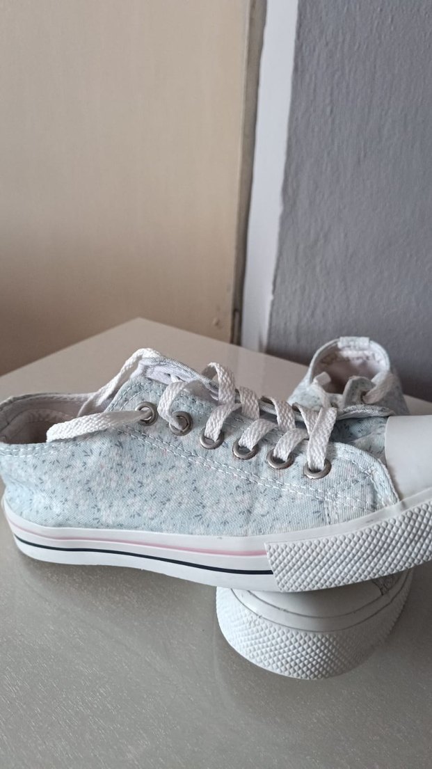 Bağcıklı, bağcıklı kapamalı, lastik tabanlı gri ve beyaz spor ayakkabı, batik desenli, sokak stili için uygun.