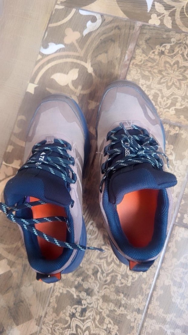Bağcıklı tasarıma sahip gri ve mavi tonlarda, dayanıklı kauçuk malzemeden üretilmiş erkek outdoor ayakkabısı. Su geçirmez