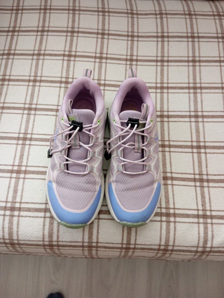 Bağcıklı, bağcıklı, mor pastel renkli kadın spor ayakkabısı, lastik tabanlı ve bağcıklı sokak stili için tasarlanmıştır. Rahat ve trend görünümlü. orjinal üründür