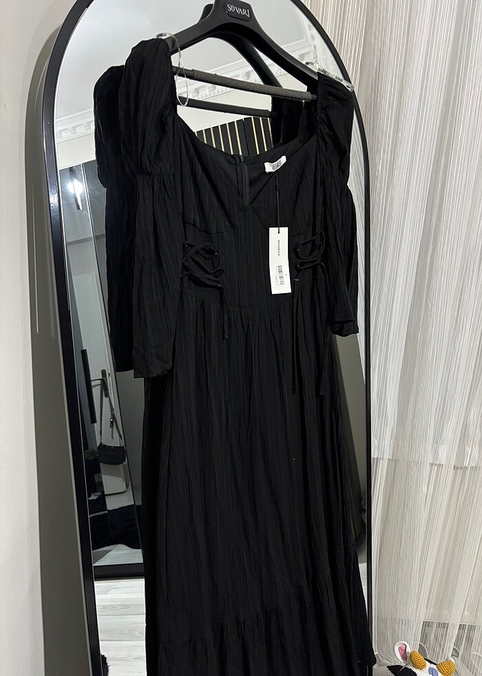 Bağcıklı müslin elbise