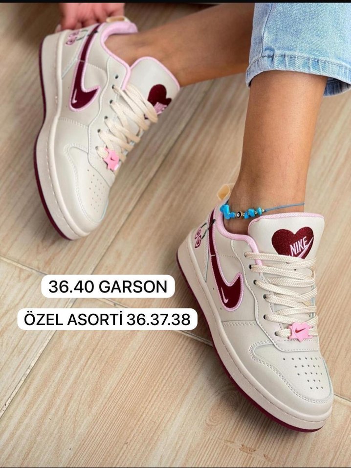Beyaz bağcıklı Nike spor ayakkabı, stiletto topuklu ve hafif tie-dye desenli, yumuşak kauçuk malzemeden yapılmıştır. Günlük kullanıma uygundur. lütfen renk ve numara bildirip sipariş açtırın