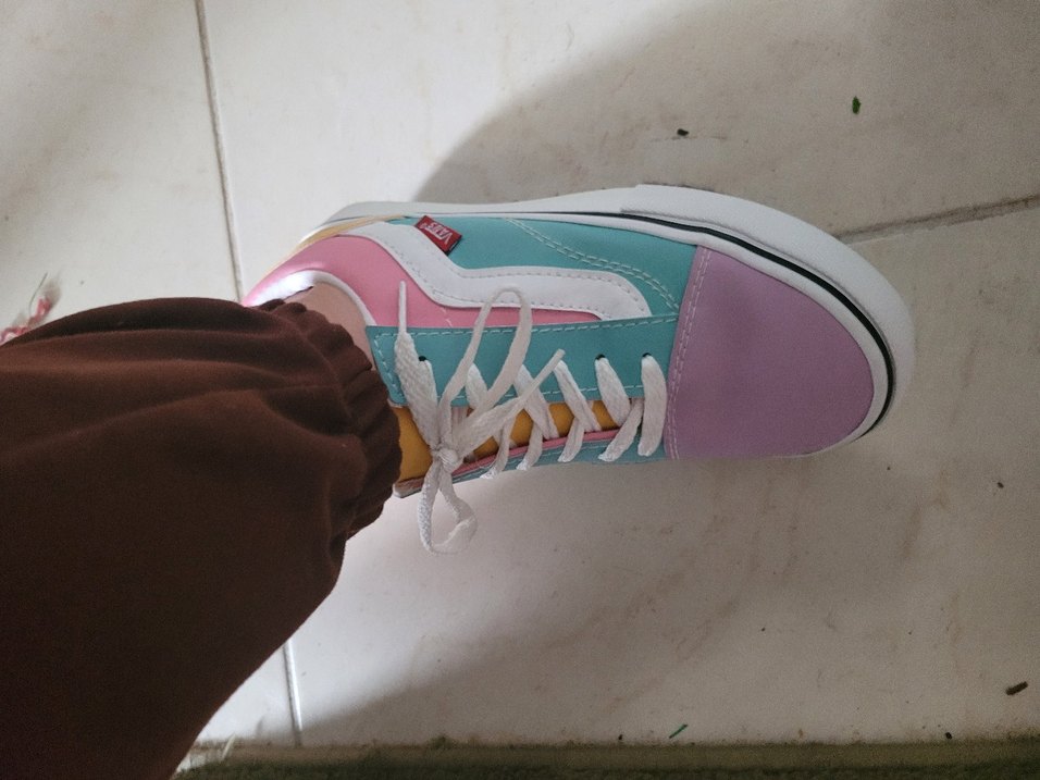 Bağcıklı, pastel renkli tie-dye desenli kadın spor ayakkabısı. Vans ayakkabı yanlış beden geldiği için satıyorum