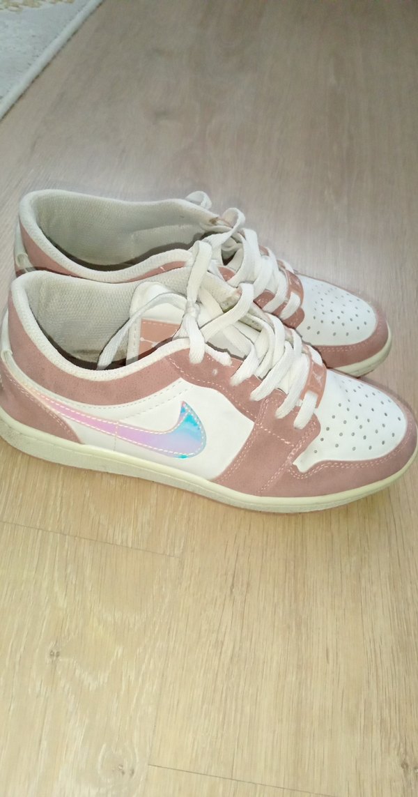 Bağcıklı, pastel pembe ve beyaz tonlarında tie-dye desenli kadın spor ayakkabısı, kauçuk tabanlı ve ince topuklu, sportif sokak stili için uygun.