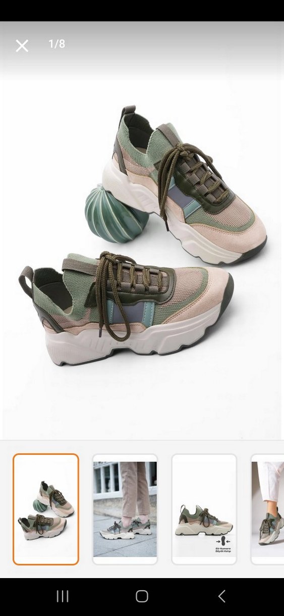 Bağcıklı, platform topuklu khaki spor ayakkabı