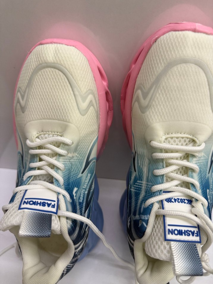 Kadın spor ayakkabısı, renkli batik, mavi-pembe kauçuk tabanlı, hafif günlük kullanım için uygundur