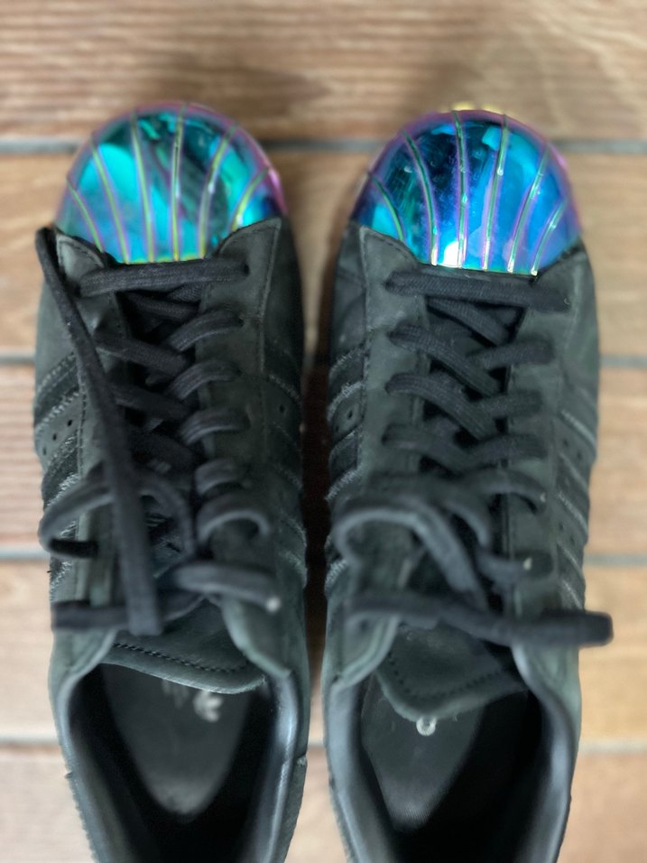 Bağcıklı siyah kadın sneakers, tie-dye desenli burun kısmı ve parlak tasarımıyla sokak stili ve spor tarzını birleştiriyor.Çok az kullanıldı , yeni gibi tertemiz, sağlam.