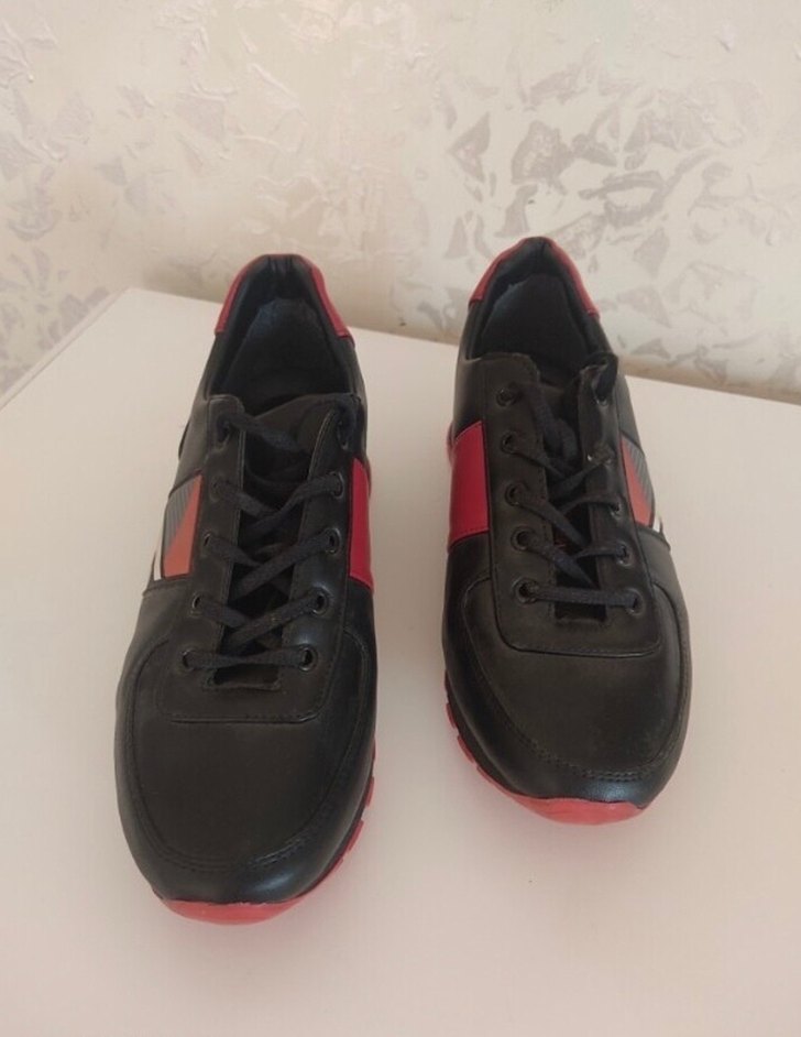 Erkekler için kırmızı ve siyah renkte, bağcıklı spor ayakkabı