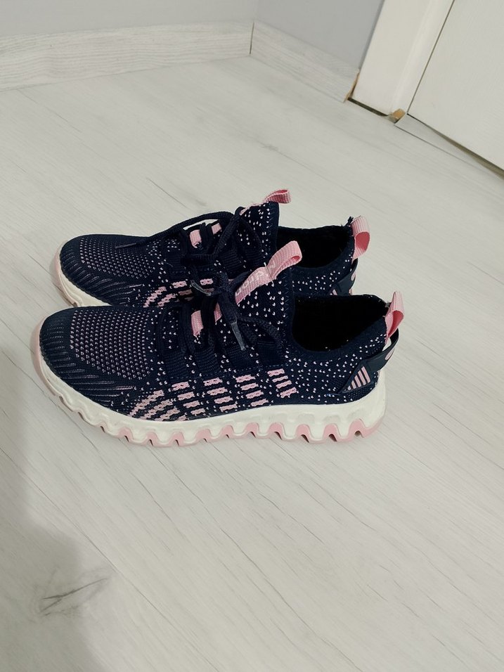Bağcıklı, koyu pembe ve siyah renklerde, lastik tabanlı spor ayakkabısı, trend sokak stili için uygundur.