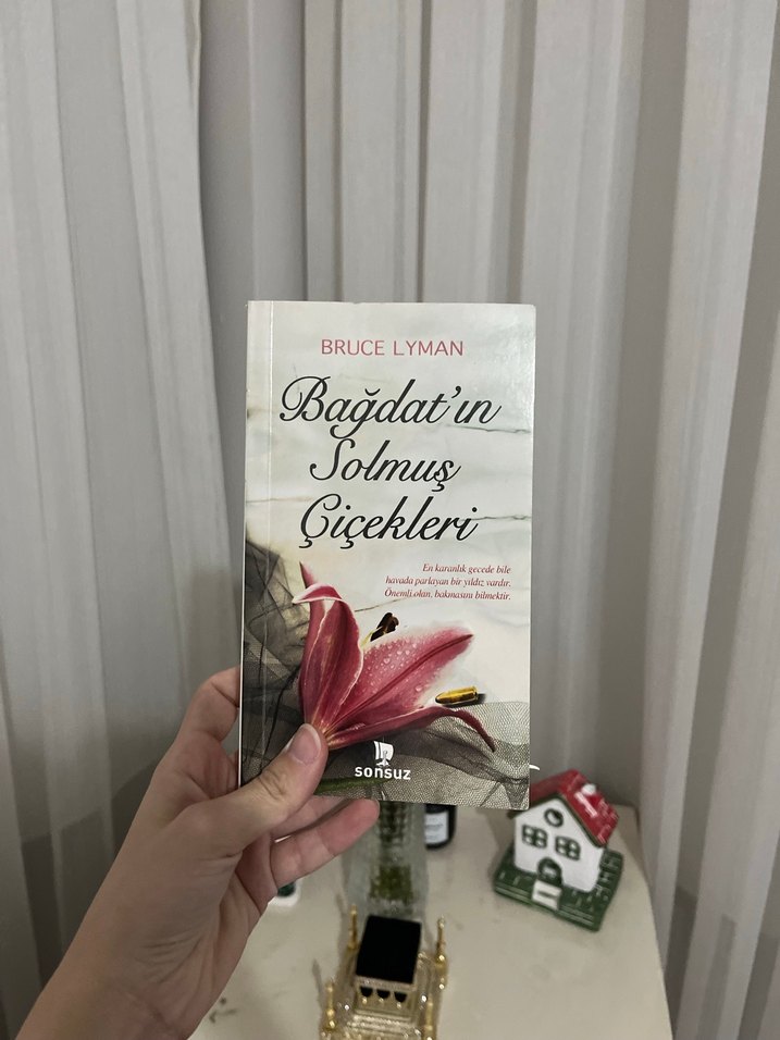 Bruce Lyman imzalı Bağdat'ın Solmuş Çiçekleri romanı, kapakta zarif bir çiçek görseliyle duygusal ve şiirsel temaları işliyor.