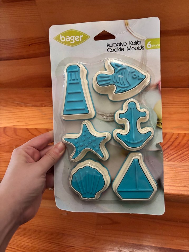 Bager markasına ait, deniz temalı 6 parça açık mavi kurabiye kalıbı seti.