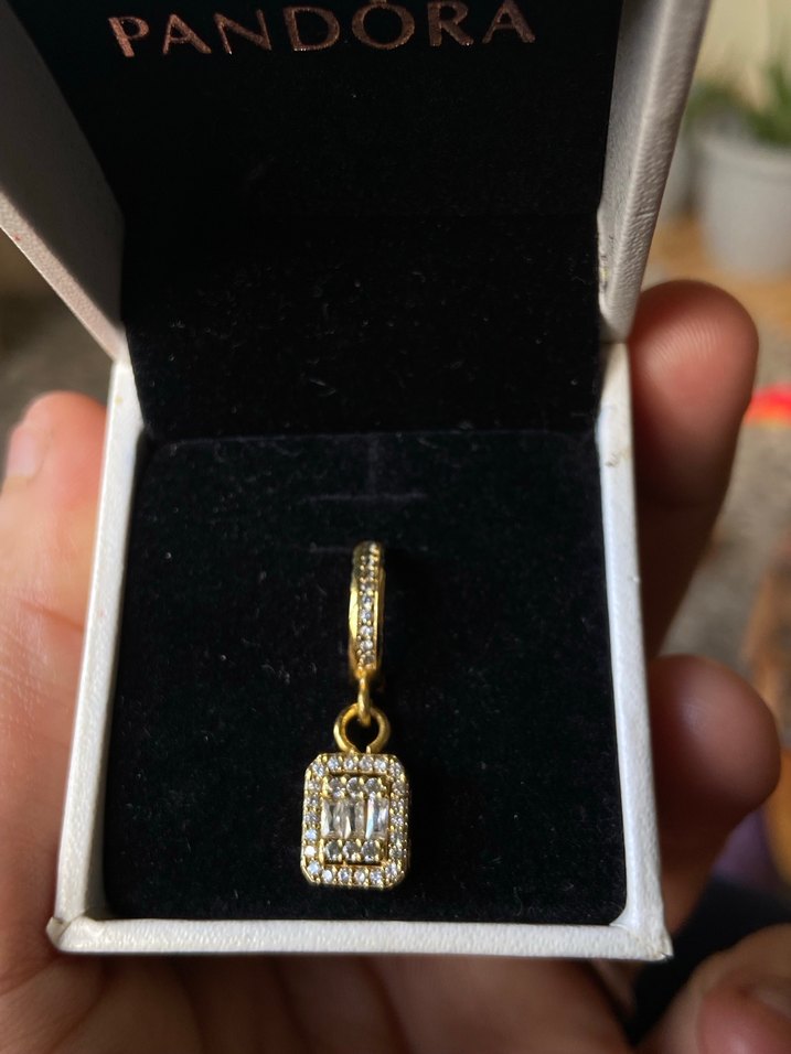 Pandora markalı, boncuklu tasarıma sahip parlak altın renkli kadın charm. Romantik akşamlar için klasik ve bohem Paris tarzını yansıtıyor.✨