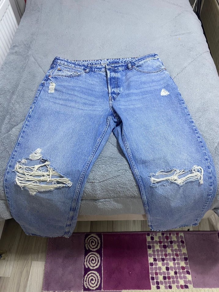 Baggy yırtık jean.