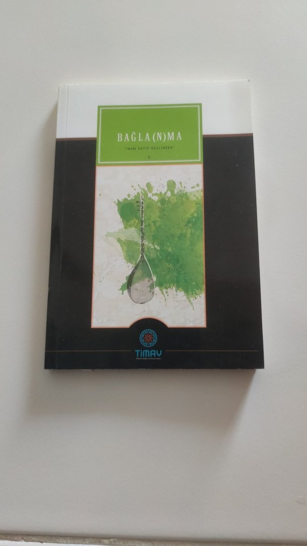 "Bağla(n)ma" adlı şiir kitabı, yeşil suluboya ve kolye görselli kapak tasarımına sahiptir. TIMAV tarafından yayımlanmıştır.