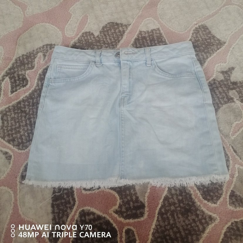 Bağlama desenli, bol kesim bej midi kot etek, salaş ve şık bir görünüm sunar. Püsküllü etek ucu detayına sahiptir.
