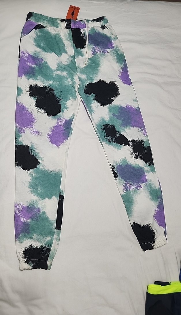 Pastel bağlama desenli, penye kumaştan yapılmış pantolon. Rahatlık için lastikli bel ve paçalar içerir.