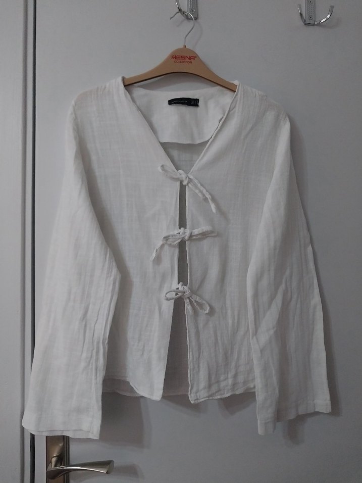 Uzun kollu, V yaka, bağlamalı beyaz keten gömlek. Midi boyda, bol kesim, minimalist ve bohem tarzda, günlük kullanıma uygun. Ürünün boyu 60 cm iki omuz arası mesafe 40 cm. Sıfıra yakın hiç giyilmedi.