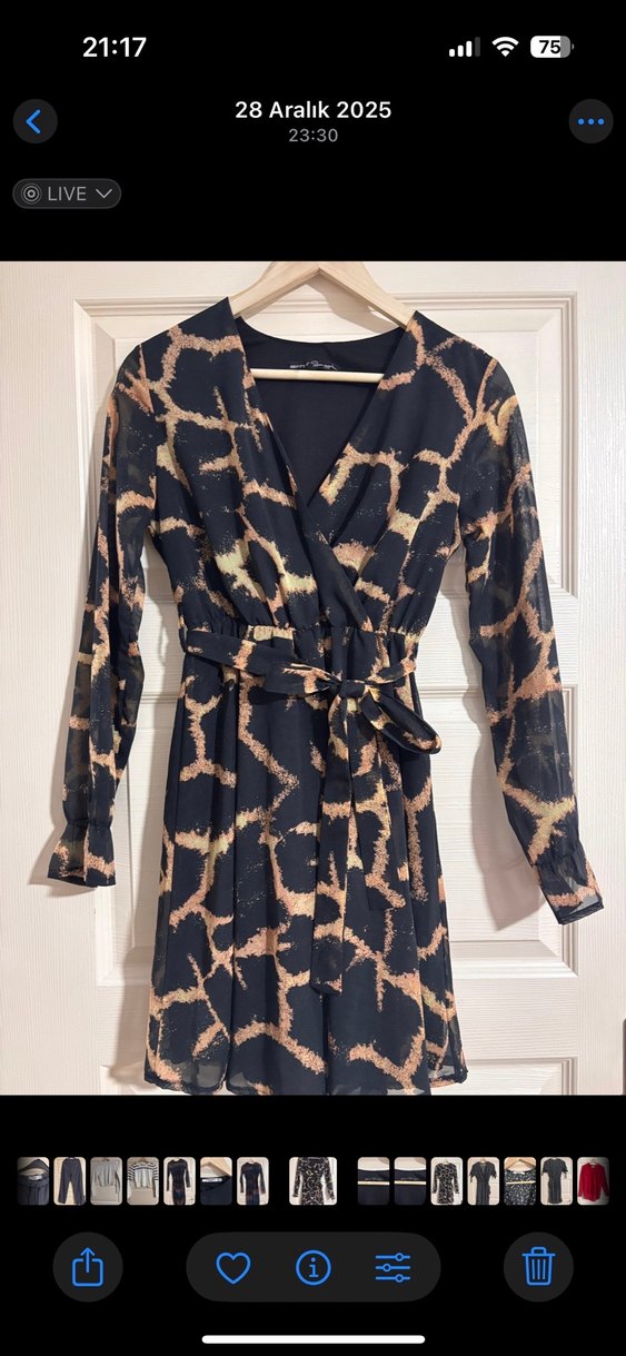 Bağlamalı, uzun kollu, midi boy, bol kesim kadın elbise.