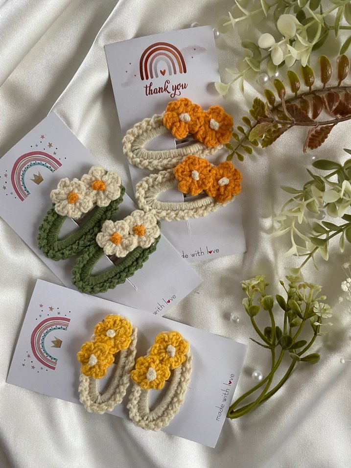 Üçlü set halinde satılır set içeriğinde toka renklerini siz kombinleyebilirsiniz. Bize mesaj atın lütfen Çiçek desenli, renkli örgü çocuk saç tokaları. Yumuşak dokulu taban üzerinde canlı çiçekler bulunur. . 5cm metal çıt çıt tokaya cotton ip kullanılarak özenle örülmüştür. Saçlarınıza baharı getirecek❤️