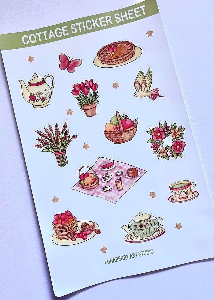 Bahar Yaz Piknik Cottage Stickers Sheet Çıkartma