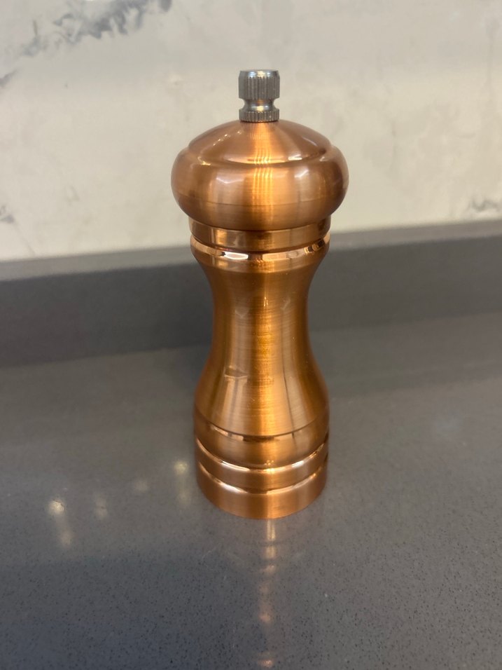 Parlak kahverengi renkte, ayarlanabilir üst kısmı ile çeşitli baharatları öğütebilen klasik tasarımlı baharat öğütücüsü. ️