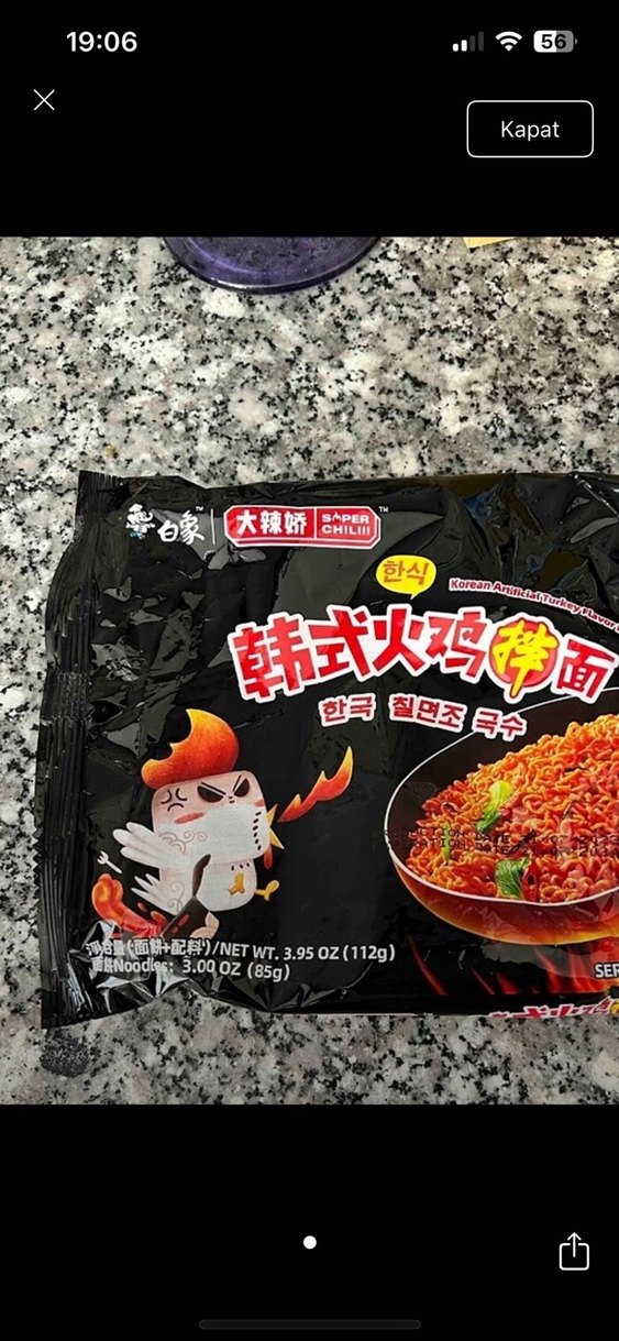 Baharatlı hindi aromalı çin usulü noodle, 112 gram ağırlığında, yoğun ve acı lezzet içerir. ️