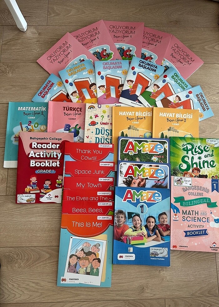 Phonics ve matematik 1 kitabı eksik. Kullanılmış kitapları olduğu için ancak silerek kullanılabilir. Hikaye kitapları tertemiz. 2023-2024 yılı kitapları.