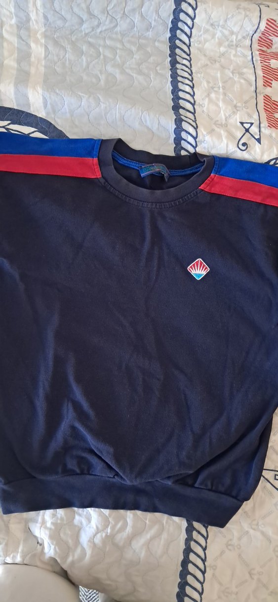 Okul kıyafeti çocuk için yuvarlak yakalı ve uzun kollu sweatshirt. Koyu mavi renk, kırmızı omuz detayları ve küçük göğüs amblemi bulunur. Rahat ve sıcak kumaştan üretilmiştir.