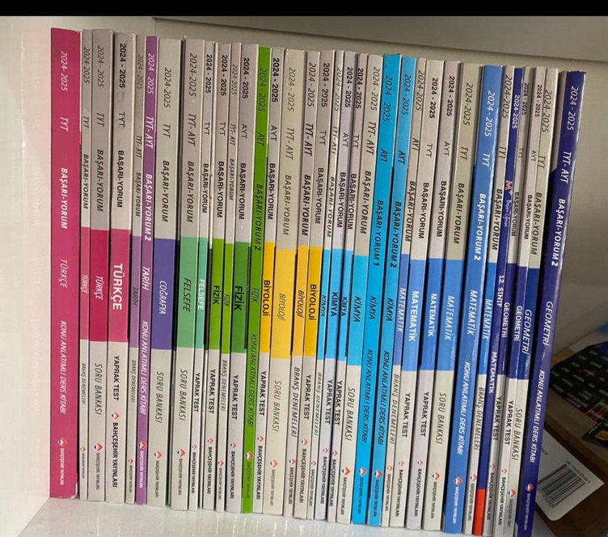 2024-2025 TYT ve AYT sınavlarına yönelik Türkçe, Coğrafya, Felsefe, Tarih, Fizik, Biyoloji, Kimya ve Matematik konularını içeren soru bankası ve deneme testleri seti. (adeti 80 tl toplu alımda yardımcı olacagım biz tanesine 900 verdik maalesef)