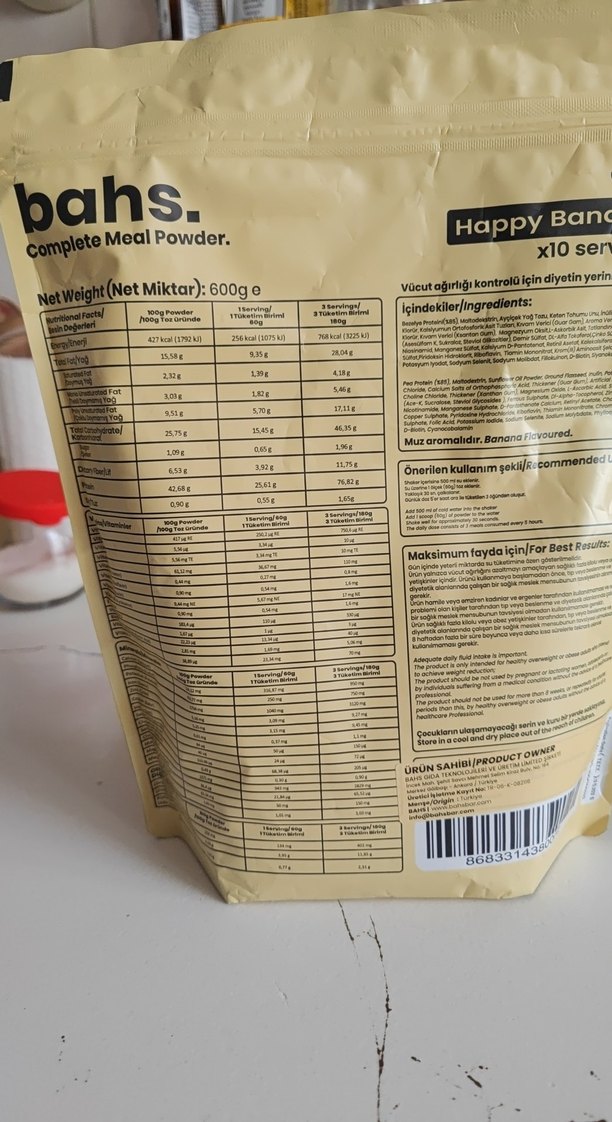 Bahs. Happy Ban Muz Aromalı Diyet Tozu 600g