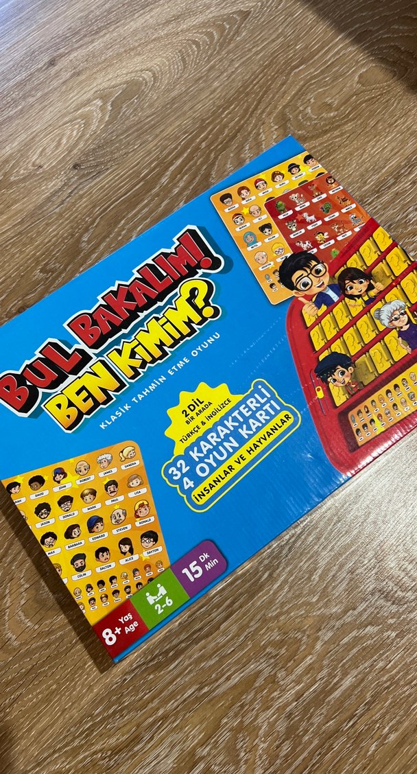 8 yaş ve üzeri için 2-6 oyunculu, 32 karakter kartı ve 4 oyun kartıyla klasik tahmin etme oyunu. Oyun süresi yaklaşık 15 dakikadır.