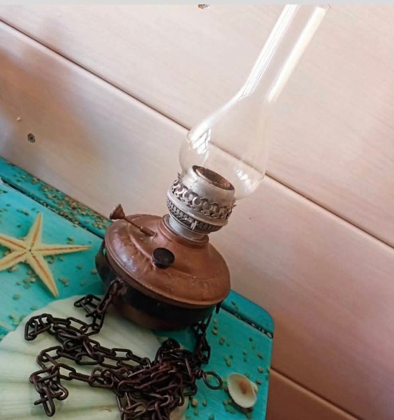 büyük boy asma zincir ile tamamı Bakır gaz lambası