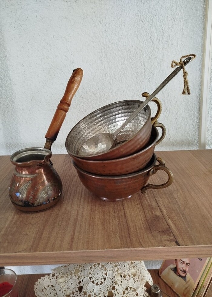 5 parça bakır cezve ve ayran tasları toplu olarak satıştadır
