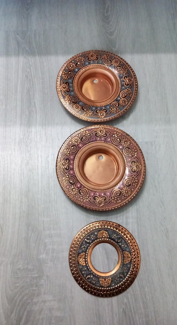 Bakir Desenli Parlak Çok Renkli Tabaklar