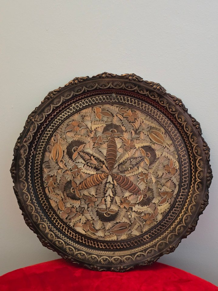 Erzincan işi kalem işçilikli bakır duvsr tabağı. 34 cm çapında 532 gram ağırlığında. büyük boy gösterişli bir tabak. Duvara asmak icin üst kısımdan delinmiş. ister çivi çakarak bu sekilde asmaya devam edin, isterseniz arkasına askı ekleyip duvara asın. Bunun dışında bir hatasi kusuru yoktur. bu durum da fiyata yansitilmistir. son fiyattır iade kabul edilmemektedir. #bakır #duvartabağı #erzincanişi #kalemişçilikli #bakırtabak #copper #dekorasyon