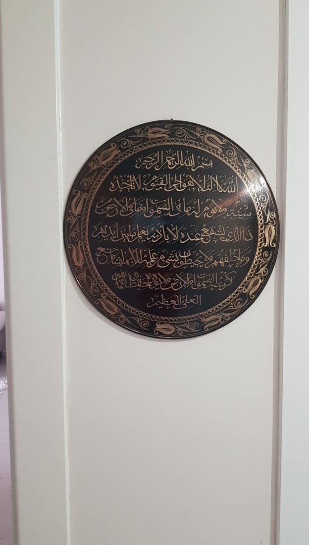 Bakır el iscilikli bombeli Ayetel kürsi yazili Dekoratif Tabak