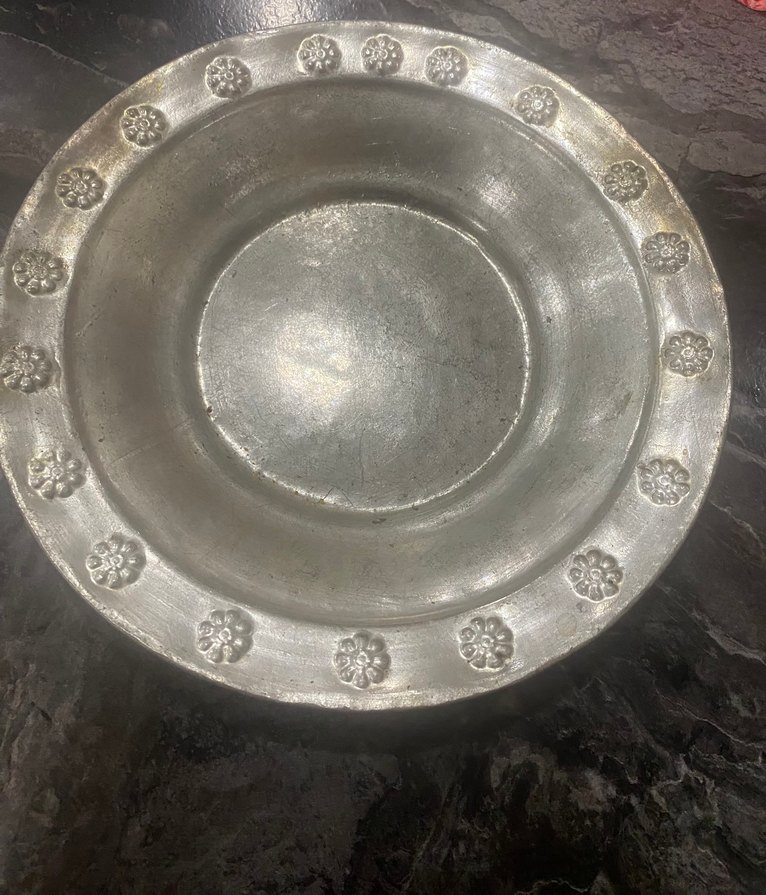 Bakır el işlemeli çiçekli Yemek kabı
