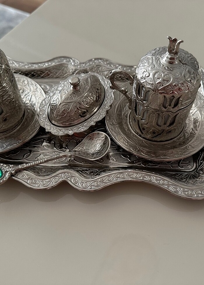 2 kişilik bakır fincan takımı. Hiç kullanılmadı.tepsili