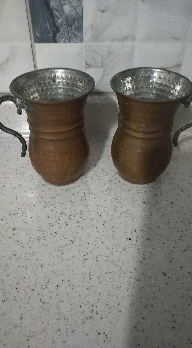 Bakır Görünümlü Parlak Kahverengi Kulplu Bardaklar 2 adet
