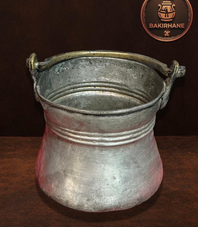 Bakırhanem markalı gri metal kova, taşıma kolaylığı sağlayan iki kulplu sağlam tasarıma sahiptir. Dayanıklı yapısıyla farklı amaçlar için uygundur.