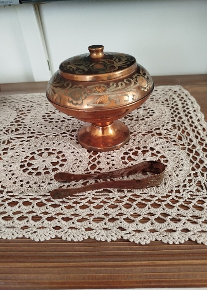 Bakır şekerlik ve şeker maşası
