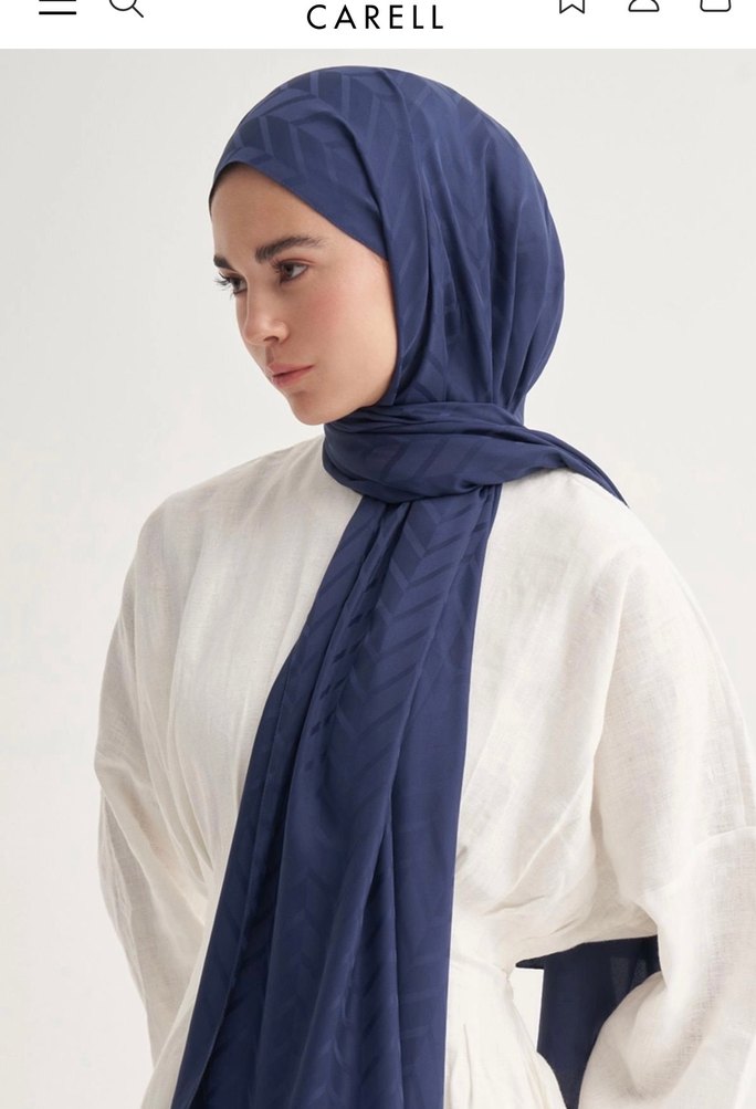 Baklava Desen Pamuk İpek Şal Lacivert Carell
