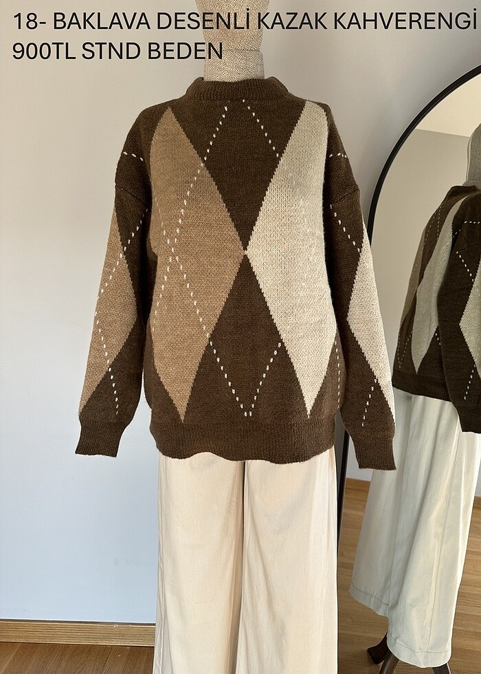 Baklava Desenli Kazak, Kahverengi. Standart bedendir. Etiketli, kullanılmamış. İş değişikliğinden dolayı elimizdeki ürünleri uyguna satıyoruz. İade ve Değişim yapamıyoruz, anlayışınız için teşekkürler. Mağazalar ve satıcılar diğer kadın giyim tekstil ürünlerimize lütfen bakınız, toptan alınacaksa uygun fiyata bırakacağız. Teşekkürler.