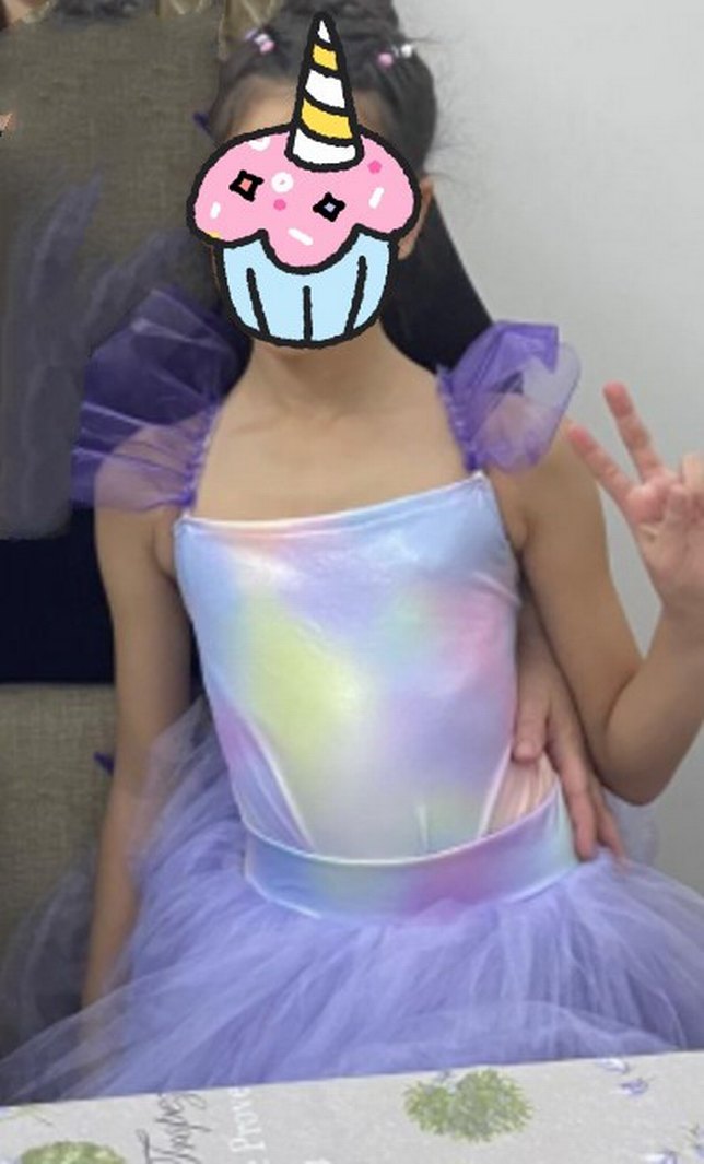 Bu kız elbisesi, pastel mor bağcıklı fırfırlı detaylarla strappy kollu ve straplez yakalıdır. Sentetik kumaştan yapılmıştır, pop kültür tarzını yansıtır.