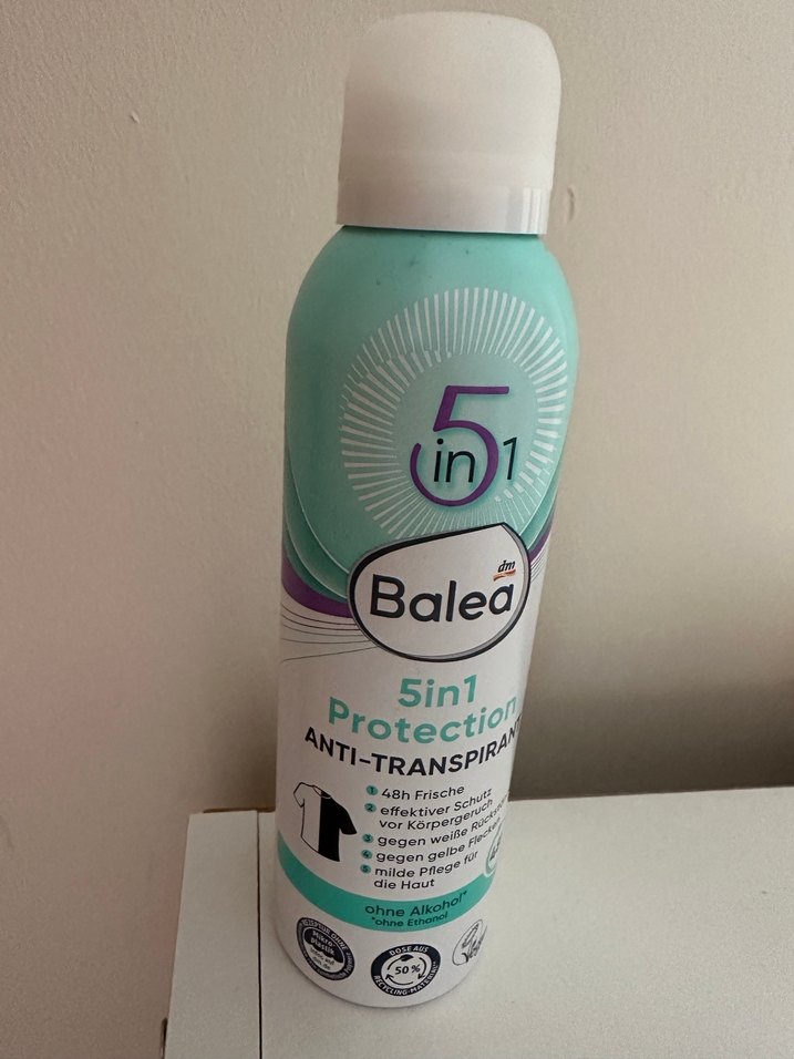 Balea 5in1 deodorant, 48 saat ferahlık ve etkili ter koruması sağlar. Beyaz izlere ve sarı lekelere karşı korur, cildi nazikçe bakım yapar. Alkolsüz formül içerir. Çok az kullanılmıştır