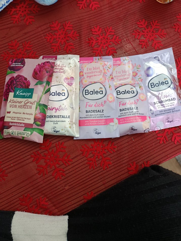 Balea markalı çeşitli kokularda ve formüllerde hem saç hem vücut ve maske paketi, içinde peri masalı banyo kristalleri ve doğal özler bulunur(avusturyadan geldi)..